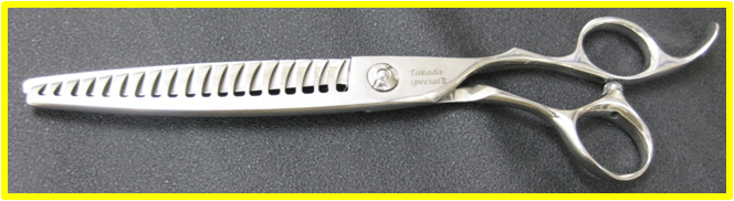 相性がよくない毛質として、ペタッと張り付いている硬毛(植生角度が低い)/ 毛ぶきがよく、抜け毛が多く、硬い短毛です。前者は、切っているのか切っていないのかわからないので時間がかかります。後者は、密集している 硬毛のパワーにハサミが負けてしまい押し切りになってしまいます。このような場合は、ハサミをストレートに切り替えて切ったほうがはやいです。